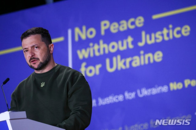 [서울=뉴시스] 이명동 기자 = 볼로디미르 젤렌스키 우크라이나 대통령이 국제사회 지지를 고려해 전쟁 중 러시아 영토로 진군하기는 어렵다는 입장을 27일(현지시간) 키이우 인디펜던트에 내비쳤다.